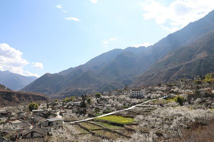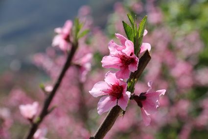 在瀘定縣冷磧鎮(zhèn)、德威鎮(zhèn)等地,桃花、油菜花及櫻花競相開放,一團團、一簇簇,綴滿枝頭,藍天、白云與各色花兒相交,金黃花海在微風中起伏。一畦畦油菜花田錯落有致、層次分明,綿延不斷。“二月櫻花開,三月桃花盛,四月紅櫻桃,五月水蜜桃?!背擞筒嘶ǎ磕觋柎喝拢瑸o定的桃花也隨著和煦春風落滿枝頭滿樹的花芽沁著香氣,一點點溢到空氣中,香了春風,也香了整座城。