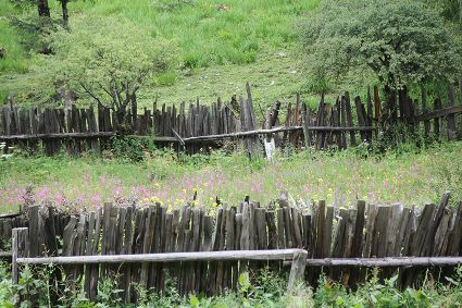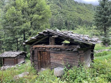 隨著海拔高度的升高與緯度的增加,一路上的植被類型也在不斷發(fā)生著變化。穿越深闊的暗針葉林,六匹馬起起落落的腳力踩出了一個(gè)馬幫的回音,所有的植物在各自的生命活動中散發(fā)出了清新怡人的芬多精,吉美為此小聲哼唱起了愉悅的歌兒,細(xì)聽卻又像是兩只云雀在不遠(yuǎn)處鳴囀。再往上走,周遭的林木又轉(zhuǎn)換成了密致的高山杜鵑林,無數(shù)修長的木流蘇垂掛在樹枝上,像哈達(dá)。一路沉默的南杰轉(zhuǎn)頭來開始與我說話“六月間,這里的每一棵樹都開滿了粉白的花朵,一樹樹的煞是壯觀好看,我一個(gè)人經(jīng)過,總能聽到一朵、兩朵花鈍落的聲音。最初,我以為是馬雞飛落了,輕聲走入林中打探,身后又會落下一朵、兩朵花,那聲音厚重沉實(shí),林中又過于安靜,我就慌忙走出了林子......”南杰說話聲音秀氣,我聽得時(shí)斷時(shí)續(xù),過風(fēng)吹送著南杰話語中杜鵑花的香氣。前路逐漸敞亮起來的時(shí)候,路邊的杜鵑樹開始變得稀稀落落了,只見路旁堆壘著高高低低的新鮮柴垛。再往上就沒有樹木了,只有矮腳盤香和淺草,路邊的山包上緊貼著密密麻麻的貌似多肉植物的草葉,從草心抽出來一枝枝薔薇紅的花柱在風(fēng)中頻頻點(diǎn)頭。雍貝在前方的馬匹上頭低得越來越沉,以為他瞌睡,我喊了聲貝,他回頭看我,面色灰白嘴唇有些發(fā)紫。南杰回望我們后一躍下馬,從路邊的淺草中折斷幾根盤香枝別在雍貝的耳際,說是可以抵御高反。剩余的兩根遞給我,細(xì)小的枝葉上積著一層薄薄地灰色粉塵,深嗅有松脂的清香氣味,安人心神。