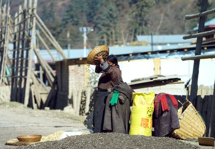 我想,擁有了清新質(zhì)樸的鄉(xiāng)野日子,就可以靜下心來(lái)。而事實(shí)上還是無(wú)法安下心來(lái),一面想著山林的神秘,一面想著城市的熱鬧。寂寞無(wú)聲地穿過(guò)巷道,那個(gè)向陰的小二樓一如既往地昏暗。拉開(kāi)麻布的窗簾,大多時(shí)候我會(huì)看見(jiàn)走在巷道里的老老少少、男男女女,他們背著柴禾,滿(mǎn)帶笑容,相互致意。他們的日子似乎充滿(mǎn)了無(wú)盡的樂(lè)趣,也充滿(mǎn)了幸福和陽(yáng)光。上午十點(diǎn)的時(shí)候,陽(yáng)光會(huì)滑過(guò)窗臺(tái),轉(zhuǎn)瞬即逝,但陽(yáng)光的確向小二樓袒露了它的無(wú)能為力。另一張桌子擺放著廚具,廚具上每天都會(huì)有新的灰塵堆積,盡管如此,它們依然發(fā)出青稞的馥郁之氣。