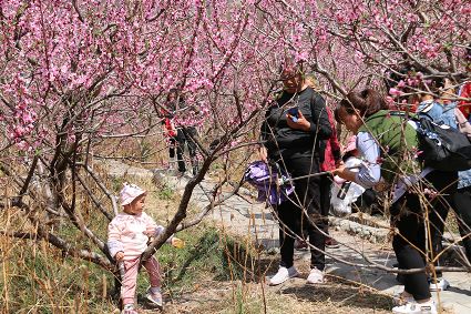 一抹抹溫暖明媚甚至跳躍著的桃紅,醉了眼簾,醉了心田。此情此景,掏出手機,隨手按下快門,就是一幅絕美的春日桃花圖,想不流連忘返都難。一彎春水,一場花事,引來眾多市民、游客前來觀賞打卡,大家在桃花樹下擺著各種造型,或拍照,或拍短視頻,還有的在這醉人的花海里唱起了歌,跳起了舞,縱享春日大美時光。