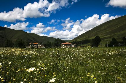 阿須草原,肅穆中的滄桑神秘。雅礱江源頭的世紀(jì)歌韻,青稞間回蕩的輕吟,飽含著世事席卷歲月與生命的贊歌。挺立于藍(lán)天下的英雄塑像,將史海中起伏的頌歌,融入艷陽移動(dòng)的光輝中。我長(zhǎng)久駐足仰望,沉緬于歷史的風(fēng)塵,英雄號(hào)角吹奏的激情從逝去的歲月中傳出,經(jīng)久不息。早晚盤旋于草崗叢野的驟風(fēng),讓草叢的搖動(dòng)和河柳的起伏都隱蘊(yùn)著刀光箭簇的頌歌。靜聲聆聽,激越的蹄音正從天邊遙遙傳來。