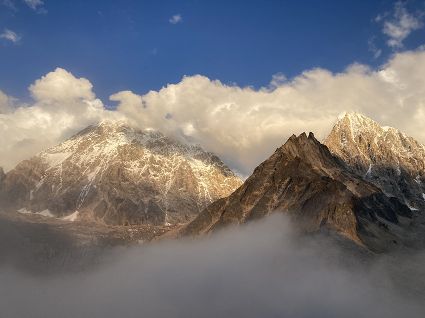 2011年10月,當(dāng)時(shí)我國最著名也是最具實(shí)力的登山家嚴(yán)冬冬、周鵬開辟了新線路“自由之舞”。兩個(gè)最佳搭檔連續(xù)阿式攀登了勒多曼因、嘉子峰和小貢嘎,獲得當(dāng)年攀登最高獎(jiǎng)——金犀牛獎(jiǎng)。