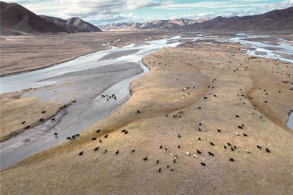仿佛聽到了無人機(jī)下哞哞的牛群鳴叫,那一抹陽(yáng)光來得正是時(shí)候,陽(yáng)光送來的何止是溫情,還有一種催促前行的呼喚。