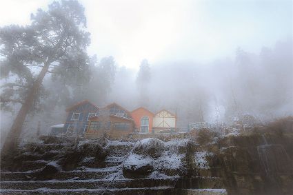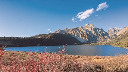 在一片片雪花的飄落中,冬天來了,它帶著風(fēng)、帶著雪,帶著讓人不禁要裹緊衣服的寒冷來了,萬物在冬的腳步中慢慢俯下身子貼緊了大地。蕭索、蒼涼、千里冰封、萬里雪飄……在這些形容冬天的詞語里,我們看到的是只有黑白兩色的畫面,黑的是物,白的是雪。但是,在甘孜州,冬天卻是色彩繽紛的,不僅有白的雪,還有藍的天、綠的水、黃的樹、紅的葉……還有炊煙升起的藏寨、水汽氤氳的溫泉和日照金山的美麗景致。