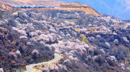 在巴塘縣的中咱鎮(zhèn)波浪村,有一片隱于山野的“世外桃源”。四月的暖陽,拂過千畝桃林,朵朵桃花惹美了眼,點(diǎn)綴在江河堤岸,盛開在春風(fēng)十里。漫山遍野,落英繽紛,仿佛走進(jìn)現(xiàn)實(shí)版的“青丘”!