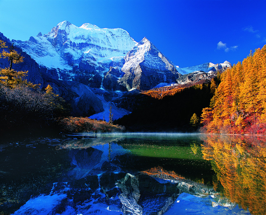 在丹巴境內(nèi),一幢幢藏寨依著起伏的山勢(shì)迤儷而建,錯(cuò)落而有致,與周圍的彩林、溪流、雪峰,構(gòu)成了一幅幅田園牧歌式的優(yōu)美鄉(xiāng)村畫卷。在新都橋,黃澄澄、金燦燦的秋景醉了雙目也醉了心靈,光影錯(cuò)綜下,漫山遍野的金黃裹挾著山巒、牛羊和牧人,讓愜意和美麗瞬間定格。在稻城亞丁和紅草灘處,樺林、村落和湖水,詮釋著層林盡染中的鮮艷欲滴,一幀幀色彩豐富的畫面,令人一眼便傾心。