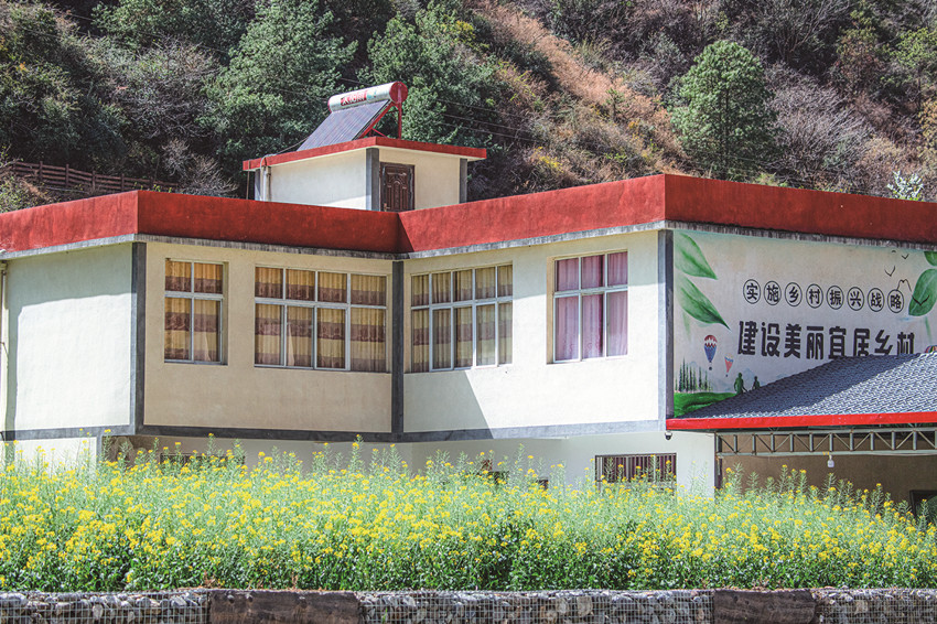 陽(yáng)春三月,驅(qū)車(chē)百里,峰回路轉(zhuǎn),至一小鎮(zhèn),喚烏拉溪,為古驛站。背夫崖下,峻山環(huán)護(hù),小河繞村,屋舍散落,白墻灰瓦,綴以紅檐,桃花夭夭,棧道蜿蜒??图倚∨嘁聥扇?,穿行花間,簪花比俏。昔日荒坡,綠樹(shù)成蔭,繁花之下,草莓豆莢,青果胡豆,蔓草芳苓。