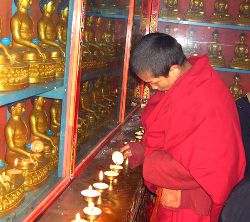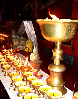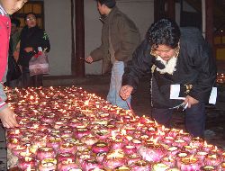 傳說藏歷十月二十五日,是藏傳佛教格魯巴(俗稱黃教)創(chuàng)始人宗喀巴大師圓寂成佛的日子。為了紀(jì)念這位杰出的宗教領(lǐng)袖,藏區(qū)各黃教寺廟和信徒于藏歷十月二十五日,舉行誦經(jīng)、磕頭,燈供儀式等隆重的祭祀活動(dòng),祭祀宗喀巴大師在天之靈和祈愿大師賜與善良的人們以吉祥幸福。