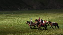 8月的扎溪卡草原水草豐美、牛羊遍地、到處是一片花的海洋,兩萬(wàn)多平方公里的廣袤大地如同一座敞開的大花園。汽車行駛在草原上,就像一只小船在無(wú)邊無(wú)際的大海上航行,有時(shí)候覺(jué)得已走到了天邊,可是登高一望,還是芳草碧連天,地平線依然很遙遠(yuǎn),好像永遠(yuǎn)沒(méi)有盡頭。在這離藍(lán)天很近離塵世很遠(yuǎn)的廣闊空間里,仿佛在夢(mèng)游仙境,周圍的山川景物都帶有夢(mèng)幻般的色彩,對(duì)自身的存在也產(chǎn)生一種不真實(shí)的虛幻感。在這里,你似乎已變成了一個(gè)自由自在的牧人,只不過(guò)你放牧的不是牛羊,而是生命和靈魂。 扎溪卡草原的夏天到處呈現(xiàn)出一派生機(jī)勃勃的盎然景象,所有的生命之花都在這個(gè)季節(jié)盡情地綻放、茁壯地成長(zhǎng)。在這個(gè)被稱為動(dòng)物天堂的地方,你仿佛走進(jìn)了一個(gè)天然野生動(dòng)物園,所到之處,不時(shí)有“羽族炫翎,蹄類競(jìng)走”的情形出現(xiàn)在身旁。你會(huì)驚喜地看到一對(duì)對(duì)黑頸鶴在水邊起舞,一群群白唇鹿在山間奔跑,敏捷的巖羊在峭壁上跳躍,矯健的金雕在藍(lán)天上翱翔……