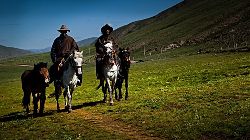 當(dāng)扎溪卡草原一望無(wú)際地層現(xiàn)在面前時(shí),相信你一定會(huì)被深深地打動(dòng)。它那氣勢(shì)磅礴不事雕琢的自然美,它的質(zhì)樸、純凈、蒼茫與曠漠,有一種大美不言的深沉。天空藍(lán)得透明,像一個(gè)巨大的藍(lán)色熒屏;云彩白得晶瑩,如絲如絮般輕輕飄過(guò)頭頂;清澈見底的雅礱江水蜿蜒流過(guò)開滿野花的草地,就連草原上的風(fēng)都帶著一股醉人的氣息。置身其間,讓人頓感神清氣爽、心曠神怡。 即使無(wú)數(shù)次地領(lǐng)略過(guò)高原上日出月落的景象,但這里的日出自有其不同凡響的輝煌。當(dāng)月亮漸漸淡出天幕的時(shí)候,大自然又開始了另一場(chǎng)更加精彩的演出:殷紅的太陽(yáng)如同宇宙娩出的嬰兒,在天地被撕裂的一剎那噴薄而出,迎來(lái)了它隆重的誕生!母親幸福的臉上頓時(shí)泛起了燦爛的紅霞,把湛藍(lán)的湖水染成了酒紅,使素潔的雪山披上了盛裝,大地萬(wàn)物都如受洗一般沐浴在金暉里,仿佛剛剛與太陽(yáng)一同新生……