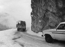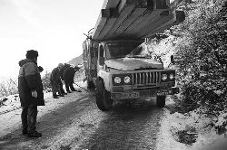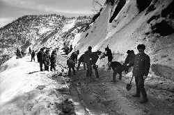 一九九七年十一月二十四日,連續(xù)多日大雪,把整個二郎山裹得嚴(yán)嚴(yán)實實,白茫茫一片。陣陣山風(fēng)吹過,大霧就像瀑布一樣,從山頂直往下翻涌傾瀉。 一大早,州交通局打冰除雪排險的干部職工就從二郎山管理站直奔山埡口。載有防滑砂的大貨車穿迷霧,繞山梁,向山頂埡口疾馳。由于氣溫太低,霧又大,車上的擋風(fēng)玻璃很快就結(jié)下了冰,路面打滑非常嚴(yán)重。前面車輛堵了起來,排險人員只好下車步行。 大霧彌漫,能見度很底,陰霾的天空又飄起了紛紛揚揚的雪花,剌骨的寒風(fēng)陣陣襲來,只聽見車蓬布在風(fēng)中“嗶剝”作響,卻看不見前面到底堵了多少車。排險人員只好相互攙扶踩著冰滑的邊路艱難地向行。好不容易來到堵在最前面的車子面前。原來是一輛載著原木的東風(fēng)牌大貨車側(cè)滑在公路上,把整個公路堵死了。 局領(lǐng)導(dǎo)當(dāng)即指揮大家用鋼釬、鐵鎬和鋤頭處理冰道,沒有撮箕,大家借來加水桶裝運冰雪……氣溫仍在急劇下降,剛從雪堆里刨出來的路,又被結(jié)起一層冰,就像地面上澆上了油,這就是冰雪道上有名的“桐油凌”。 有二位老同志不顧年老體弱,積極參與打冰除雪,一個在打冰時,被彈起的冰碴把腦門劃了一個口子,鮮血直往外冒。有人想幫他包扎,他堅決不干,自己就用手帕按住,把帽子向下拉蓋住傷口就算了。血從手帕中浸透出來,與眉毛上的冰凌結(jié)在一起。氣溫太低,冰層太厚,十字鎬每挖一下,多數(shù)情況下也就是挖下一個白點而已。不一會兒,另一位老同志已是滿頭大汗,大家勸他休息一下,他卻說:趁著現(xiàn)在雪不是太大,早點把主道上的冰雪多除點,過往二郎山的車輛就多一份安全。 排險人員的手凍紅了,刨冰雪碰傷的指頭還流著鮮血,身上蒸發(fā)的熱氣,把衣領(lǐng)口、袖子口和褲子口結(jié)成了冰,可是,誰也沒有吭一聲。 ……受堵車輛終于向前開動了。 風(fēng),越刮越猛,雪,越來越大。 防滑車在冰雪道上艱難地向前爬行著,車箱上面的職工們揮舞的洋鏟向路面撒著防滑砂。一路上風(fēng)絞雪,防滑車象一頭不聽使喚的牛,顛簸、亂竄,好不容易才來到260(二郎山最險處),對這里“桐油凌”路面進(jìn)行重點防滑處理后,防滑車又返回來,開始向山頂進(jìn)發(fā)……風(fēng)雪二郎山上打冰除雪、防滑排險,看似沒有驚天動地的壯舉,身臨其景才知其艱難辛苦。難怪當(dāng)年每每經(jīng)過二郎山冰天雪地奇險路段的車,都會向風(fēng)雪中屹立路邊的交通系統(tǒng)排險保暢通的職工們鳴笛致敬,風(fēng)雪中的那份情彌足珍貴。 川藏線上的老司機傳下來一首傷心的順口溜:“車過二郎山,如闖鬼門關(guān),萬幸不翻車,也要凍三天!”其險峻實為罕見,尤其是途經(jīng)二郎山260(公路公樁)處,曾被淡虎色變的人稱為“鬼招手”的險路段。 1983年1月3日,有著安全行車44萬公里記錄的一位駕駛員開著輛嶄新的東風(fēng)牌貨車,同行還有兩名職工,夜行二郎山,在彌天大霧中神秘地“失蹤”了。十五天后,搜山的人才用望遠(yuǎn)鏡看到260公里路樁處的山崖下,有一塊汽車破篷布掛在樹枝,猶如招魂的凄厲幌幡在冷風(fēng)中招搖晃動。鋼纜繩吊著搜山的人下到崖下400米深處的谷底。扒開一座座雪堆,叫人汗毛倒豎:雪堆下,盡是廢大梁、爛車廂、銹車頭和支離破碎的汽車,足有一個汽車連!一輛不知埋了多久的卡車廂里牛肉已腐爛,駕駛室里坐著三具發(fā)黑的僵尸……其狀慘不忍睹!