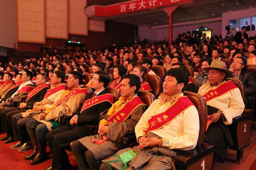 表彰儀式上,受表彰的10名“感動甘孜教壇”優(yōu)秀教師、40名全州優(yōu)秀校長、20名全州優(yōu)秀教育工作者、30名全州優(yōu)秀班主任、100名全州優(yōu)秀教師和19名全州優(yōu)秀支教教師獲獎代表身披綬帶,在觀眾熱烈的掌聲中上臺領(lǐng)獎。當(dāng)獲得“感動甘孜教壇”優(yōu)秀教師、全州優(yōu)秀校長、全州優(yōu)秀教育工作者等稱號的老師接過獎狀時,全場所有的掌聲都化作濃濃的問候,送給全州13000萬余名教育工作者。
