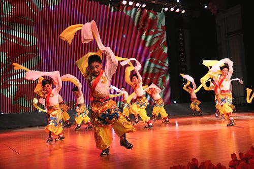 在歡快的音樂聲中,《師恩如歌》拉開了“園丁頌”文藝晚會的序幕。悠揚的歌聲,歡快的舞蹈,熱烈的掌聲,演繹著同一個主旋律:“老師,是您為我們開啟了智慧的大門,加減乘除,算不盡您做出的貢獻(xiàn)!詩詞歌賦,頌不完對您的感激!千言萬語只能匯成一句話:老師,您辛苦了,我們永遠(yuǎn)感謝您!”晚會以“園丁頌”為主題,分為“播種希望”、“愛的光芒”、“九月禮贊”三個篇章。歌曲《圓夢中國》、情景劇《守望白云》、舞蹈《老師親,媽媽親》等13個節(jié)目先后上演。一首首膾炙人口的歌曲,唱出了對人民教師的無限深情,一個個激情昂揚的舞蹈,道出了對人民教師的萬般感激。旋律優(yōu)美、歡快熱烈、精彩紛呈的晚會深深地吸引了現(xiàn)場觀眾的眼球。一聲聲發(fā)自內(nèi)心的問候,一句句來自心靈的祝福,將晚會一次次推向高潮,晚會現(xiàn)場掌聲雷動、歡呼雀躍,《吉祥祝?!犯栉璞硌轂檎_晚會畫上了一個圓滿的句號。