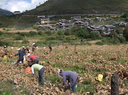 這是一個豐收的季節(jié),這是一個農(nóng)人們充滿歡聲笑語的季節(jié)。10月8日,記者走進(jìn)九龍縣呷爾鎮(zhèn)華丘村,看到面貌一新的藏寨掩映在成片的玉米地里,正是收獲玉米的季節(jié),鄰里相幫,大家在密密匝匝的玉米地里收獲玉米,農(nóng)人們在玉米地里簡單午餐,談笑風(fēng)生,議論今年的收成,擺談如何調(diào)結(jié)構(gòu)增加收入,說家長里短,既有勞作的辛苦,又有鄰里團(tuán)結(jié)的深厚情誼。放眼望去,漂亮的藏寨、忙碌的人群,組成一組人與自然和諧的山村風(fēng)景畫。(記者 田杰 馬建華 攝影報道)