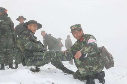 連日來,武警四川省總隊第二支隊緊貼反恐維穩(wěn)和搶險救災任務實際,突出陌生地域、復雜條件和高寒氣候戰(zhàn)斗場景,將特戰(zhàn)隊員拉至海拔4000米以上的野外山地,狠練臨機拉動、高海拔處突、實兵對抗、極限體能、野外生存等課目訓練,不斷挑戰(zhàn)特戰(zhàn)隊員戰(zhàn)術技能、生理極限,錘煉軍人血性和打贏能力。 (于傳濤 攝)