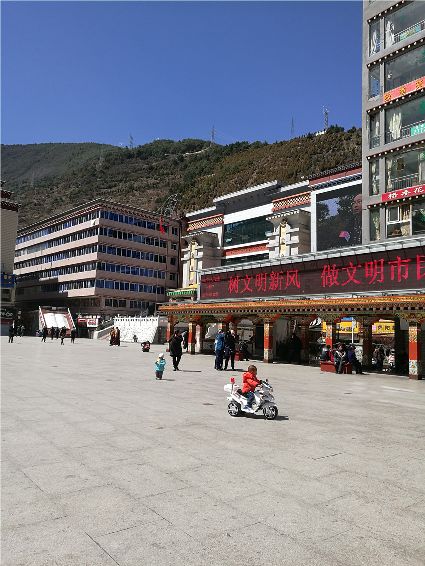 陽(yáng)光碎碎的灑下,穿透過(guò)空氣,我們一邊狠吸含有陽(yáng)光的空氣,一邊欣賞陽(yáng)光下別樣的風(fēng)景。石階兩旁,稚嫩的小草汲取了前幾天的雨水,趁著天朗氣清正努力破土;靈動(dòng)的小樹像正在站哨的士兵,認(rèn)真而仔細(xì);微風(fēng)拂過(guò),經(jīng)幡隨著風(fēng)的節(jié)奏飄揚(yáng),太陽(yáng)能路燈的風(fēng)扇慵懶的轉(zhuǎn)著,遠(yuǎn)望陽(yáng)光下的康定城,是那樣的寧?kù)o祥和。