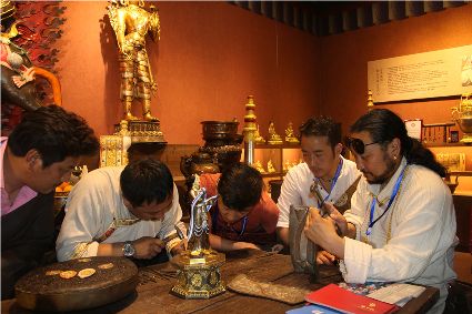 本屆非遺節(jié)期間,我州特色展館向游客展示了格薩爾彩繪石刻、藏族金屬鍛造技藝、藏文書法、噶瑪嘎孜畫派唐卡、阿西土陶燒制技藝、藏族牛羊毛編織技藝,南派藏醫(yī)藥等國家級、省級非遺項(xiàng)目。在歷時(shí)9天的活動(dòng)中,我州的非物質(zhì)文化遺產(chǎn)傳承人帶來了數(shù)百件非遺手工藝精品。大量的手工藝商品聚集展館的展示區(qū),供參觀者挑選,有些非遺傳承人還在現(xiàn)場為顧客現(xiàn)場制作作品,向廣大參觀者展示了民族手工藝的制作流程。