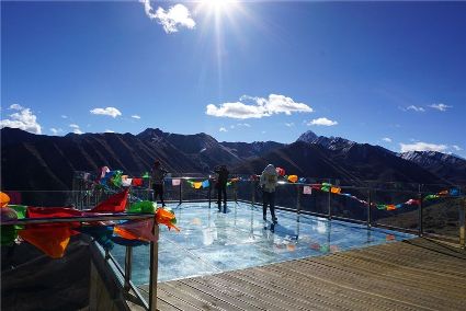 景區(qū)共有2個觀景平臺,“群峰為屏觀景平臺”和“俄米曲觀景平臺”,兩個觀景平臺都是觀賞貢嘎群山的絕佳觀賞點,視野廣闊,在這里可以欣賞到藍(lán)天白云,光影交錯,巍峨的貢嘎群山伴隨著連綿白雪顯得格外壯觀震撼。