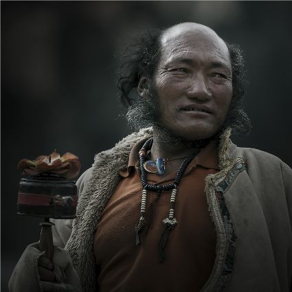 每當(dāng)我手持相機時,對他們始終懷有一種敬畏,我捕捉到他們眼神里流露出虔誠??粗?jīng)筒上“甲多”的飛轉(zhuǎn),我陶醉了,醉在那轉(zhuǎn)經(jīng)筒的旋轉(zhuǎn)舞動,醉在那轉(zhuǎn)經(jīng)筒傳誦的故事,醉在那一張張手持轉(zhuǎn)經(jīng)筒的面孔,還有,還有因祈禱音符助推而從未停止的轉(zhuǎn)經(jīng)筒……