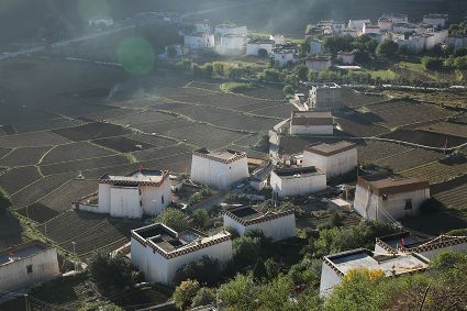 果實滿枝頭、莊稼堆糧倉、新村新貌。金風(fēng)送爽的十月,走進香巴拉鄉(xiāng)城,隨處可見農(nóng)牧民群眾脫貧后的喜悅與感動。
