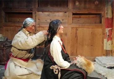 歷時(shí)一個(gè)多月,擠奶、喝酥油茶、茶馬古道、商人打秤、康巴商人袖內(nèi)交易、客人喝酥油茶場景、弦子、主人房、藏式廚房、婚俗、倉庫、羊毛編織、藏文書法、理塘傳統(tǒng)建筑等蠟像雕塑,將康巴人過去的生活還原得栩栩如生。