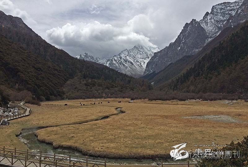 如果一直往里走,可以到達地獄谷,據(jù)說每一片石頭都是刀刻一樣的尖銳,那里還有一座天平,可以稱你善惡的分量。沒有路,只能徒步到達那里??墒俏覀冎皇亲唏R觀花,路上有當?shù)厝苏隈W著物資往山里運,這是為挖蟲草季準備的干糧帳篷等等,為了生活,他們將在山里面呆上很長日子,搜尋草地里蠕動微弱的氣息,需要足夠的眼力和耐心汗水。