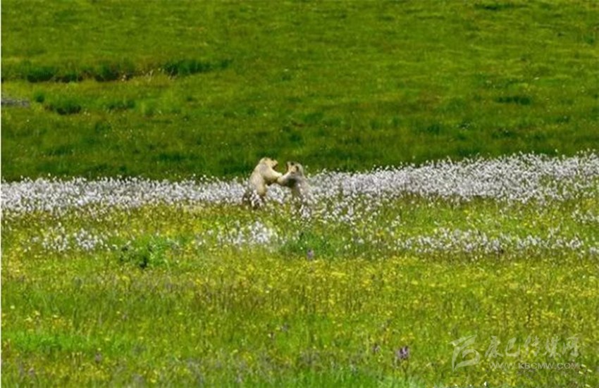 藍(lán)天白云、雪峰皚皚,冰川閃爍、青山融融、綠草茵茵、波光粼粼。湖岸珍禽異獸出沒,湖中野鴨成群,魚兒游弋。山花爛漫,爭芳斗艷,真可謂世間仙境。