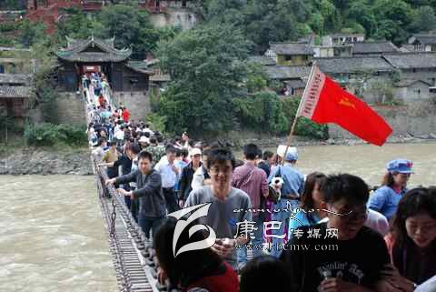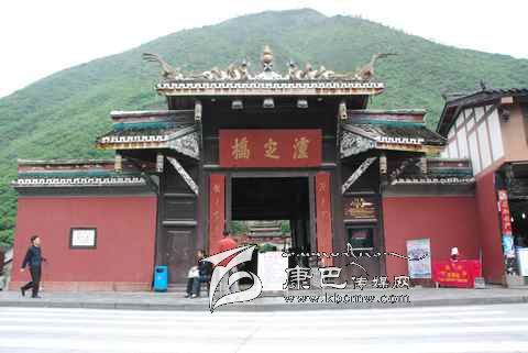 瀘定橋始建于清康熙44年 (1705年),次年五月竣工,康熙御筆題名“瀘定橋”。橋身共由13根鐵鏈組成,其中底鏈九根,扶手四根。橋東西兩端各有橋臺一座,西端觀音閣下有康熙題寫之《瀘定橋》石碑,橋東有《御制瀘定橋碑記》,瀘定橋是大渡河上第一座穩(wěn)固的大鐵索橋。1935年中國工農紅軍晝夜行軍240里,英勇飛奪瀘定橋,打開了北上抗日的通道,“十三根鐵鏈托起了一個共和國”,毛澤東同志為此寫下了“大渡橋橫鐵索寒”的壯麗詩句,瀘定橋自此名揚四海,成為中國紅色第一橋。為紀念紅軍飛奪瀘定橋這一壯舉和奇跡,于1985年在沙壩建立了“紅軍飛奪瀘定橋紀念館”和紀念碑。紅軍飛奪瀘定橋紀念碑由鄧小平同志題寫碑名,聶榮臻元帥題寫碑文。紅軍飛奪瀘定橋紀念館收集了紅軍飛奪瀘定橋時用過的門板、槍、炮、紅軍的旗幟、文件箱、信件證明、標語、戰(zhàn)報、手雷、馬刀等珍貴文物110余件以及177幅歷史照片。瀘定橋是全國首批重點文物保護單位,是國家重點培育的 “紅色旅游區(qū)”、重點組織規(guī)劃的 “紅色旅游精品線路”和重點建設的 “紅色旅游經(jīng)典景區(qū)”。