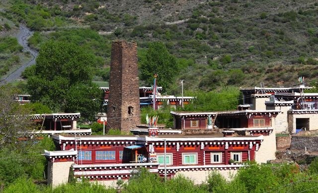 走進(jìn)這座別致的高原城市,首先呈現(xiàn)在你面前的就是那鱗次櫛比的藏式民居。這些民居外表主要由棕白兩色構(gòu)成,白色的屋頂,白色的主墻,木結(jié)構(gòu)處多用棕色顏料染涂,其間配以紅色、藍(lán)色圖案,在藍(lán)天、白云、青山、綠水的輝映下,仿佛幻化成妙不可言的積木圖案。這里的民居修得美輪美奐。如果不是親眼見到,還一定會(huì)認(rèn)為這令人眩目的房屋是夢(mèng)境。這就是道孚民居,被譽(yù)為散落人間的仙境皇宮。