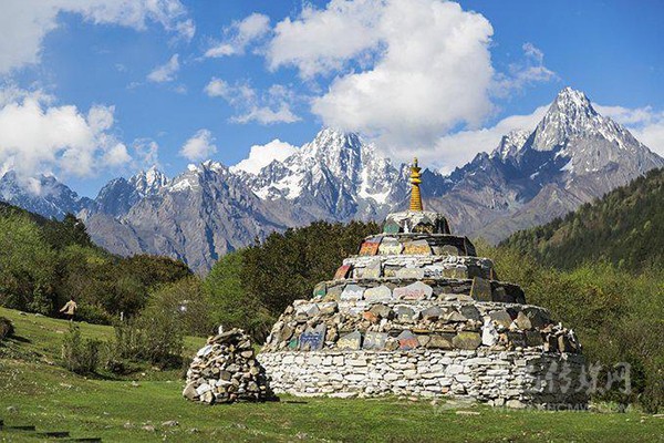 七色海邊有藏區(qū)的白塔以及無數(shù)的瑪尼堆,對(duì)藏民來說,這里是無比圣潔的地方,也是他們的朝圣之地。在七色海的四周圍繞著很多雪山,他們的海拔都在5000米以上,很多都是常年積雪不化,因此不論什么季節(jié)來木格措都能看到雪山的風(fēng)景。
