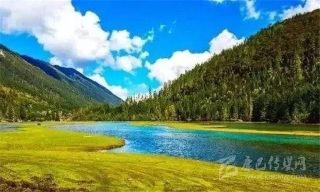 四周有草原、森林、雪山相伴,風(fēng)景如畫。每到夏天,湖面上開滿各種奇花異草,滿谷幽香,在清澈透底的湖水襯托下,美不勝收。
