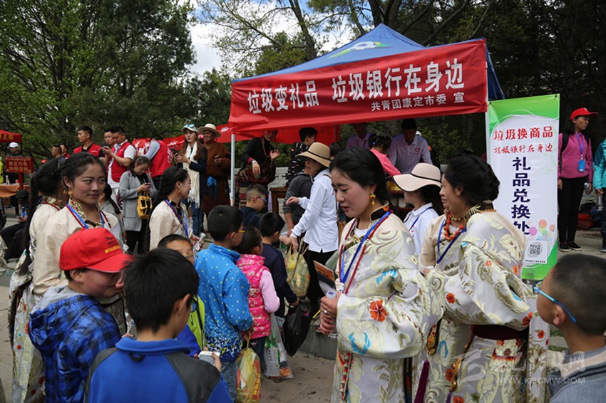 曬佛儀式之后是第三屆“梵音”音樂會。音樂會在由州歌舞團演繹的面具舞《祈福康定》中拉開序幕,13個表演節(jié)目中,既有透人心靈的梵音演唱和二胡演奏,又有激蕩人心的說唱表演和流行演唱,還有質樸脫俗的原生態(tài)民歌演唱和群舞鍋莊,時尚和古樸、流行與傳統(tǒng)都在這里得到了集中展現。原生態(tài)歌曲《溜溜調》,原創(chuàng)歌曲《康定先生》《新編木雅鍋莊》等極具康定特色的節(jié)目更是將情歌故里的人之美、景之美、文化之美展現得淋漓盡致。將近90分鐘的表演高潮迭起、精彩紛呈,現場喝彩聲、歡呼聲此起彼伏,手機、單反、平板、航拍交相輝映,忙著錄視頻、拍照片、發(fā)微博、曬動態(tài)的人更是比比皆是在。除了精彩的表演,現場身著華麗盛裝的康巴美女也是一道靚麗的風景,引得無數中外游客爭相與之合影留戀。從四面八方趕來叫賣、推銷各種商品的店商和攤販也為此次活動增添了不少生氣。此外,康定團市委還特意在活動現場開展了“垃圾變禮品”活動,通過贈送禮品鼓勵大家清理垃圾,此次活動雖然人流巨大但場地衛(wèi)生異常良好。