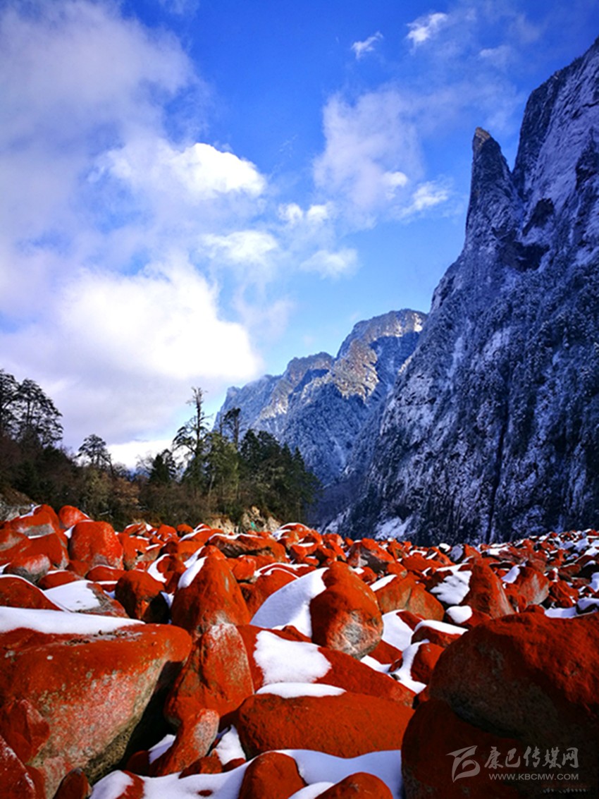 位于貢嘎山腳下綿延20多公里的紅石灘,更是與雪凇形成了強(qiáng)烈的視覺對比。燕子溝紅石歷經(jīng)冰川融水的沖擊,從遠(yuǎn)處望去,愈顯鮮艷和壯麗。據(jù)燕子溝風(fēng)景區(qū)工作人員介紹,紅石只能在特定的環(huán)境中生存,它對生存環(huán)境如海拔高度、溫度、濕度、空氣純凈度及日照條件等要求極為苛刻。燕子溝景區(qū)紅石灘自海拔2100米以上,一直到貢嘎山主峰腳下,綿延近20公里,好似一張紅地毯從天而降!就規(guī)模、密度以及顏色鮮艷度來說,幾乎無人能及,曾有專家稱燕子溝景區(qū)紅石灘為世界紅石公園。