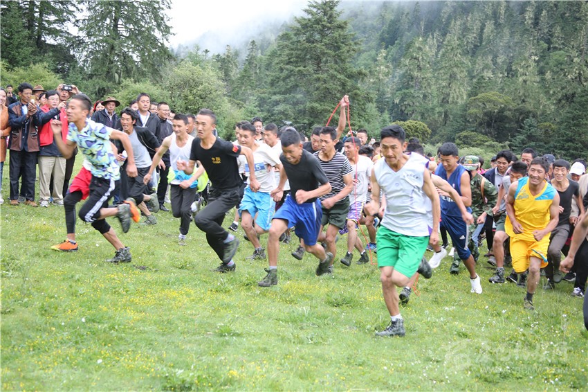 徒步穿越邀請(qǐng)賽是九龍縣委、縣政府主辦的2018年群眾文藝匯演暨甘孜州山地旅游節(jié)之圣湖祈福·第三屆伍須海游海節(jié)活動(dòng)的主要內(nèi)容之一。140多名參賽選手和幾百名旅游愛好者一早來到伍須海邊,置身于云霧繚繞的山巒之間,共同見證賽事啟幕。在宣布比賽規(guī)則后,隨著裁判一聲哨響,參賽選手從郁郁蔥蔥、芳華吐露的伍須海岸的上草壩奔向山峰,經(jīng)過伍須海、海臺(tái)景點(diǎn),最終到達(dá)風(fēng)景名勝日魯庫。在11公里的山路中,參賽選手將爬越4200多米的高峰,穿越古老蔥郁的原始森林,感受高山杜鵑和高原野花的麗姿,與窸窣的鳥鳴為伴,在競(jìng)賽的同時(shí),樂享藏彝走廊的無盡魅力。