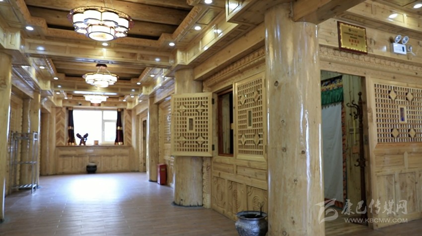 這幢民“居”之所以是“宿”,是因為它的底層被設(shè)計建造成為了11間客房,安裝現(xiàn)代化設(shè)施后用于旅游接待。而二樓則為臥室、經(jīng)堂、客廳、貯藏室、廚房、走廊和陽臺等,在建造中最難的一道工序便是室內(nèi)裝修的雕刻和繪畫,此二門藝術(shù)可謂“崩科”之精華所在,極具康巴文化特色。