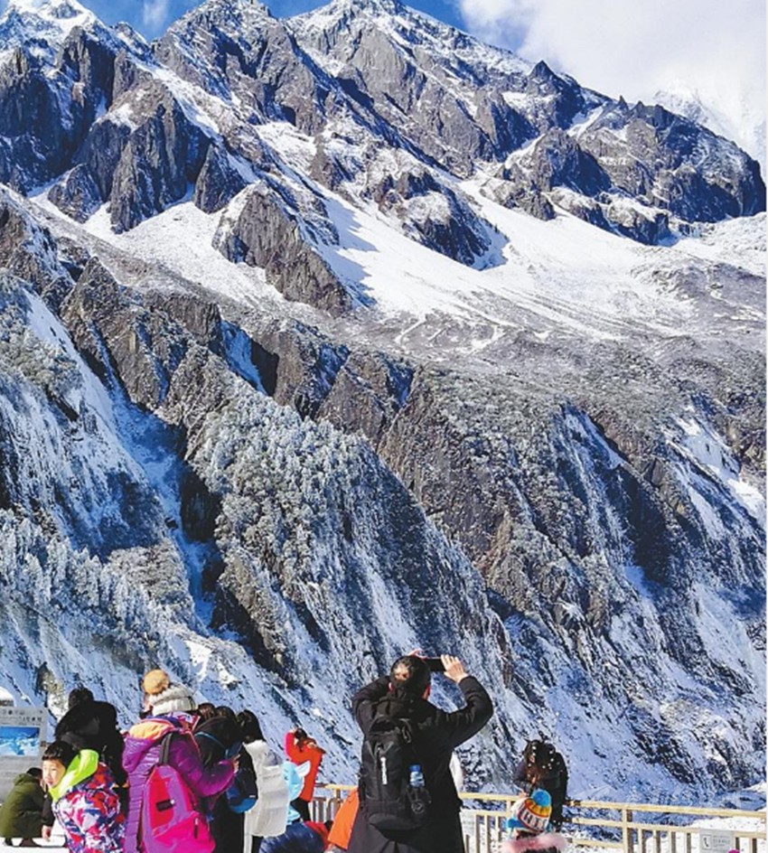 從海螺溝到新都橋駕車路線全程約155.7公里,途徑情歌故鄉(xiāng)康定、木雅景區(qū)等。被譽為“攝影天堂”的新都橋,冬日里別有一番風味,銀裹素裝的高原民居,不畏嚴寒的馬匹、牦牛尋覓著美食,遠處的山峰被云霧籠罩,多了一份朦朧美。