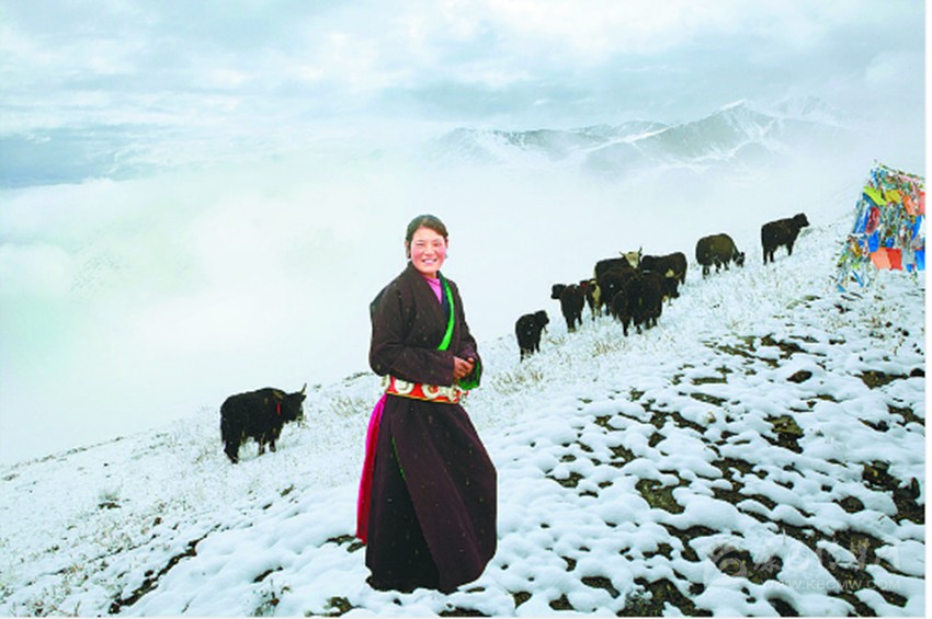 雪是柔情的,石山是墨翠的,猶如一幅冬日寫意圖,橫亙在天地之間的美色,而這就存在于冬季的道孚。