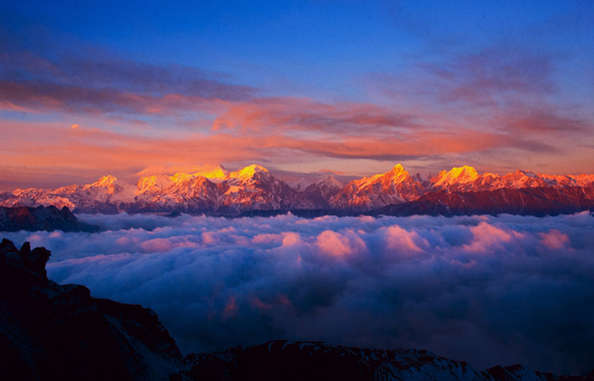 高山生態(tài)風(fēng)光游。拜謁中國離都市最近的極高山——“蜀山之王”貢嘎山,走進冰川、溫泉、森林、紅石……領(lǐng)略超凡脫俗的“全域貢嘎”垂直景觀;登上中國最美地理階梯——二郎山景觀,東瞰天府水墨大地,西仰貢嘎金山,閱盡蜀山遺世美景。