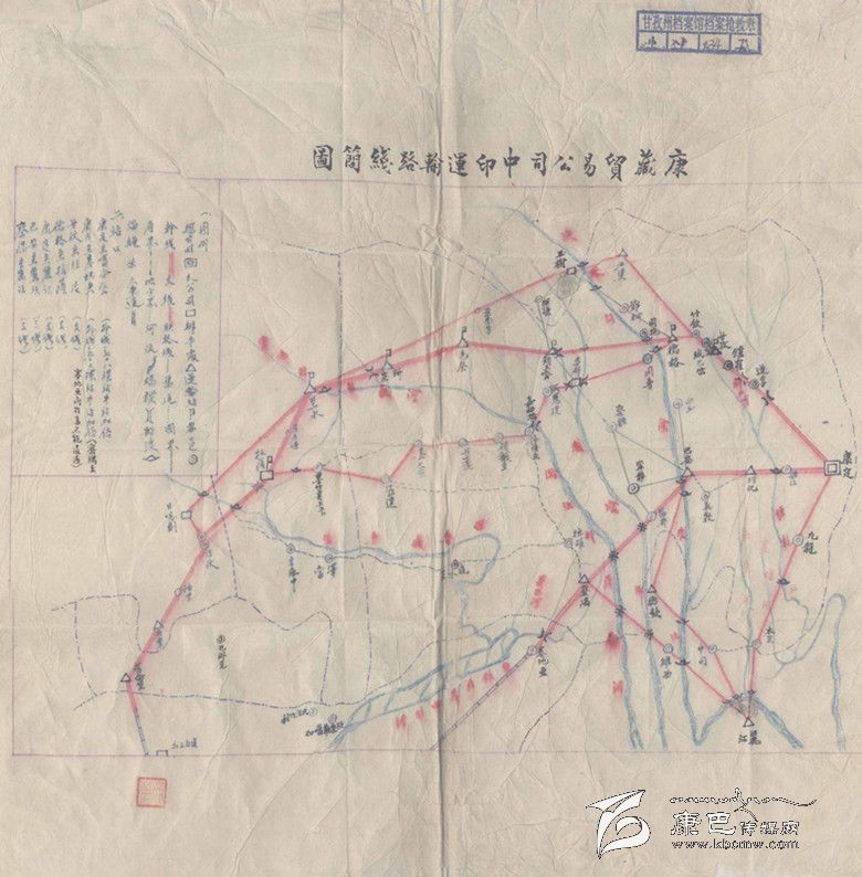 在很多人的印象中,所說(shuō)的“茶馬古道”僅是從四川的雅安到康定,然后從康定到青海牧區(qū)和西藏拉薩。事實(shí)上,這條古道直達(dá)印度。在塵封的檔案中發(fā)現(xiàn)一份“康藏貿(mào)易公司中印運(yùn)輸路線簡(jiǎn)圖”,清晰地標(biāo)明從康定往西走直到印度加爾各達(dá)等地的商品運(yùn)輸線路。