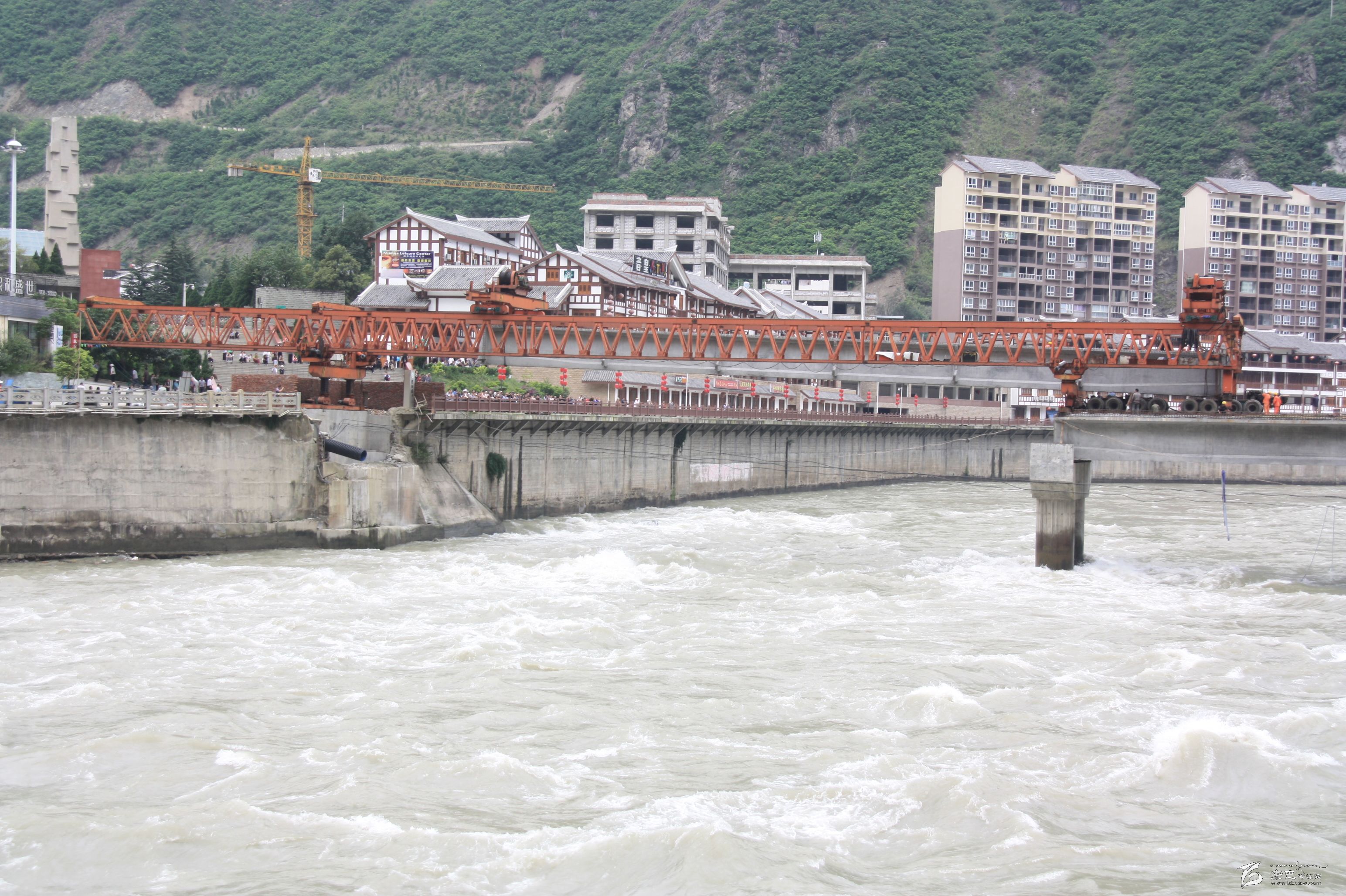 2015年9月中旬,葛洲壩集團(tuán)瀘定項(xiàng)目部,順利、安全完成“城南大橋”拆舊建新第3跨T型梁的架通,標(biāo)志新“城南大橋”主體修建成型。遠(yuǎn)觀新橋氣派壯觀。目前大橋施工方正加緊工期,對(duì)新橋第三跨的橋面混凝土澆鋪硬化,接著是橋欄的安裝。施工方承諾:2015年10月底新橋先行通人,保證年底通車。屆時(shí),一座引用原橋名,在原橋址上新建,屬特大預(yù)應(yīng)力混凝土梁式(T型梁)主跨3跨,全長(zhǎng)170米,橋面寬11.5米,其中2×2米人行道+7.5米機(jī)動(dòng)車道,嶄新壯觀“城南大橋”同舊“城南大橋”一樣得到過橋人的敬重和欣慰。2013年12月被拆除的舊“城南大橋”由此從人們的視野中消失了。但橋名被保留下來了,舊橋的容貌被印在攝影愛好者的照片里了。