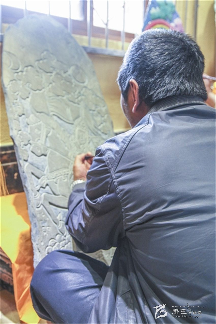 所彭告訴記者,剛開始學(xué)習(xí)石刻技藝時(shí),就是刻一些“六字真言”之類的作品。經(jīng)歷了五、六年的磨礪后,就開始在土登老人的指點(diǎn)下,刻一些簡單的佛像作品。土登老人辭世后,所彭便擔(dān)負(fù)起傳承老人技藝的重任。從參軍再到退伍,直到今天,彩繪石刻仍然是所彭的最愛。他說,雖然自己不是非遺傳承人,但這并不重要。重要的是,他喜歡這門技藝,也樂意為格薩爾彩繪石刻傳承做些力所能及的事情。所彭說,他最遺憾的是自己的孩子中沒有一個(gè)人學(xué)習(xí)石刻技藝。但他堅(jiān)信,經(jīng)過發(fā)掘和保護(hù),會(huì)有越來越多的人行走在格薩爾彩繪石刻的傳承路上。