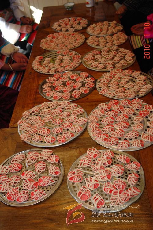 “花茹”是一種用面粉制作的糕點,是巴塘人逢年過節(jié)、婚禮慶典等節(jié)慶日不可或缺的美食佳肴,可以這樣說,在節(jié)日期間或宴請賓朋之日,在眾多的糖果糕點中,如缺少了“花茹”,便自然就失去了巴塘風味。