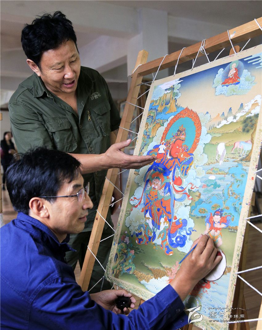 根秋扎西指導(dǎo)唐卡繪畫。