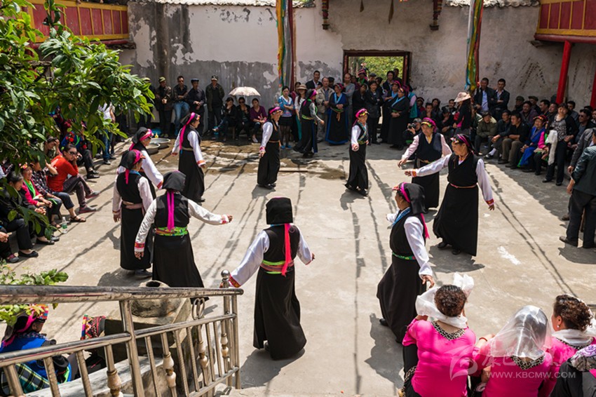 魚通鍋莊是魚通地區(qū)最傳統(tǒng)的一種舞蹈,在幾百年前已開始流傳,它在自身傳統(tǒng)文化的基礎(chǔ)上吸收了其他民族的文化,使其舞蹈獨(dú)具特色。魚通鍋莊動(dòng)作幅度小,剛?cè)岵?jì),步伐先慢后快,剛勁有力又柔美飄逸。在魚通地區(qū),跳鍋莊仍然是節(jié)慶婚宴時(shí)必不可少的內(nèi)容。無(wú)需什么演出場(chǎng)地,只要興之所至,人們便圍成一圈,中間放一張桌子,上面擺放酒、臘肉、錢、米或麥子。男女老少身著長(zhǎng)衫,分成兩隊(duì),男女領(lǐng)舞各一名,眾人隨著領(lǐng)舞之人對(duì)唱對(duì)舞??谥谐~一出,手、腳便跟著甩出,歡樂喜慶便隨之而至。同魚通山歌一樣,魚通鍋莊目前也只有一些上了年紀(jì)的人才會(huì)跳了,由于沒有文字和曲譜,古老的魚通歌舞正面臨著失傳的尷尬境況。