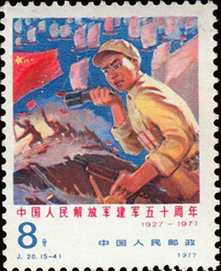 1977年8月1日發(fā)行的紀念郵票“雄師過大江”。