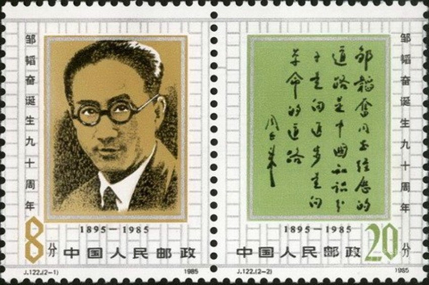 記者是一個(gè)承載著光榮與夢(mèng)想的職業(yè),又是充滿(mǎn)挑戰(zhàn)、需要激情、不怕艱辛、固守責(zé)任的行業(yè)。在我國(guó)發(fā)行的人物類(lèi)郵票中,一些堪稱(chēng)中國(guó)紅色記者的人物曾多次出現(xiàn)在方寸之中,其中,最具代表性的是1985年11月5日,原郵電部發(fā)行的J122《鄒韜奮誕生90周年》紀(jì)念郵票。該套郵票共2枚,第一枚為鄒韜奮畫(huà)像,第二枚是周恩來(lái)的題詞。兩枚郵票采用橫連票設(shè)計(jì),背景為文稿稿紙,主題鮮明,寓意深刻。