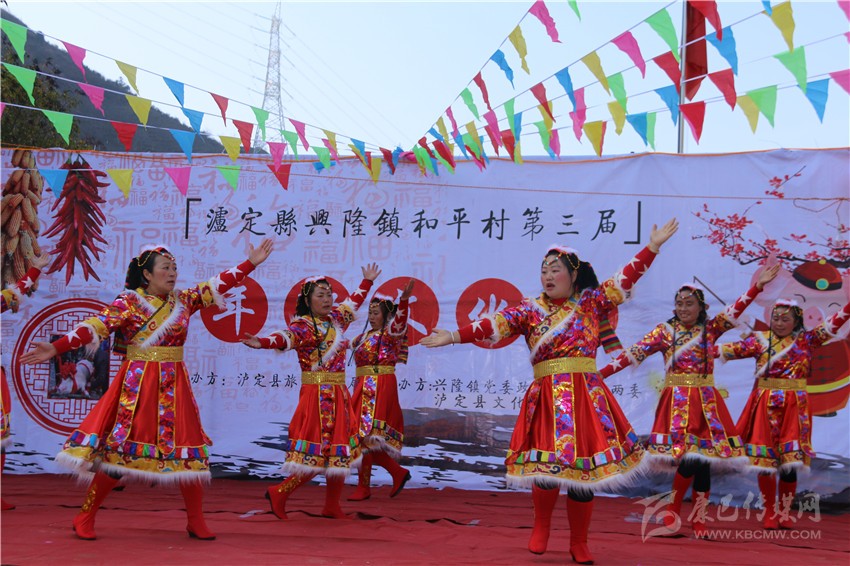 “這里有舉世聞名的牛背山,還有那風景秀麗的娘娘山,蜿蜒曲折的大渡河,遠方的朋友?。g迎你到和平來!”村民自告奮勇上臺演唱的歌曲,引得觀眾陣陣掌聲?!拔矣昧恕稓g迎你到康巴來》的調,把歌詞改了,還是要體現(xiàn)我們的地方特色。唱得怎么樣不說,這是我們老百姓的舞臺。”