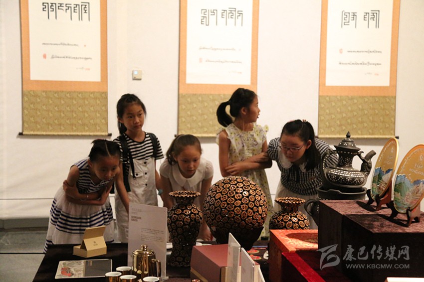 這幾天,一個(gè)十歲的外省小女孩觸動(dòng)了呷多的心靈?!八谖颐媲皝?lái)來(lái)回回很久,我以為她只是好奇看看,結(jié)果卻讓我驚訝萬(wàn)分?!弊屵榷嘞氩坏降厥牵∨⒕谷皇莻€(gè)“藏文書法迷”,她曾到過(guò)西藏旅游,那里的美景讓她難忘不已,那里與藏文化有關(guān)的一切更讓她迷戀眷念。如今,在展館內(nèi)看到呷多寫書法,小女孩就被“定住”了。