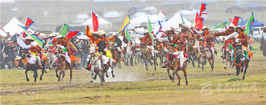 “神駿飛蹄沖云霄,箭過耳畔風(fēng)蕭蕭。眨眼已達(dá)終點(diǎn)線,歡呼聲起似驚濤。”——這是今年理塘賽馬會(huì)現(xiàn)場(chǎng)最貼切的寫照。8月3日上午,在“馬術(shù)之鄉(xiāng)”的理塘縣八一賽馬場(chǎng),禮炮聲響還未散盡,來自曲登鄉(xiāng)、高城鎮(zhèn)、格木鄉(xiāng)、奔戈鄉(xiāng)、禾尼鄉(xiāng)及村戈鄉(xiāng)共計(jì)1000名草原騎手齊登場(chǎng),他們忽而馬背倒立,忽而藏身馬肚,忽而俯身拾哈達(dá),忽而飛槍射擊,繪出一幅壯闊人心的畫面。