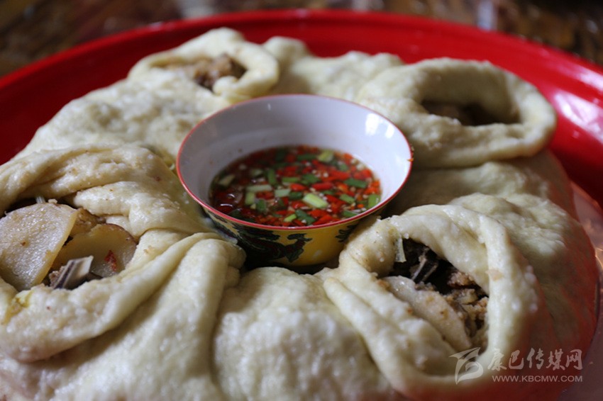 但是,家用的籠屜小,蒸出的數(shù)量有限,為了讓戰(zhàn)士們夠吃,婦女們就借來大籠屜,將包子做得更大,軍民共食蒸肉,暢敘友情。為了表達軍民魚水情,大家把蒸肉稱為“團結包子”。從此,“團結包子”這個涵蓋著軍民一家親意義的名字就延續(xù)下來。十八軍進藏路過巴塘時正值端午節(jié),自此,每年端午節(jié),巴塘城區(qū)家家戶戶都要吃“團結包子”,以此紀念十八軍進藏,也意寓全家團團圓圓。